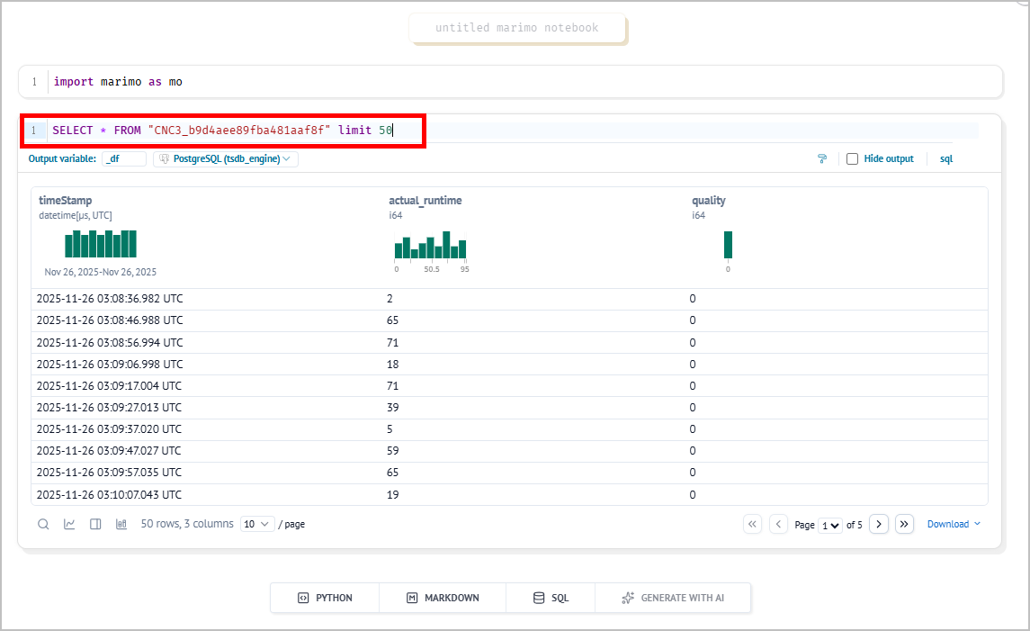- Cell 2: Query data from the database
