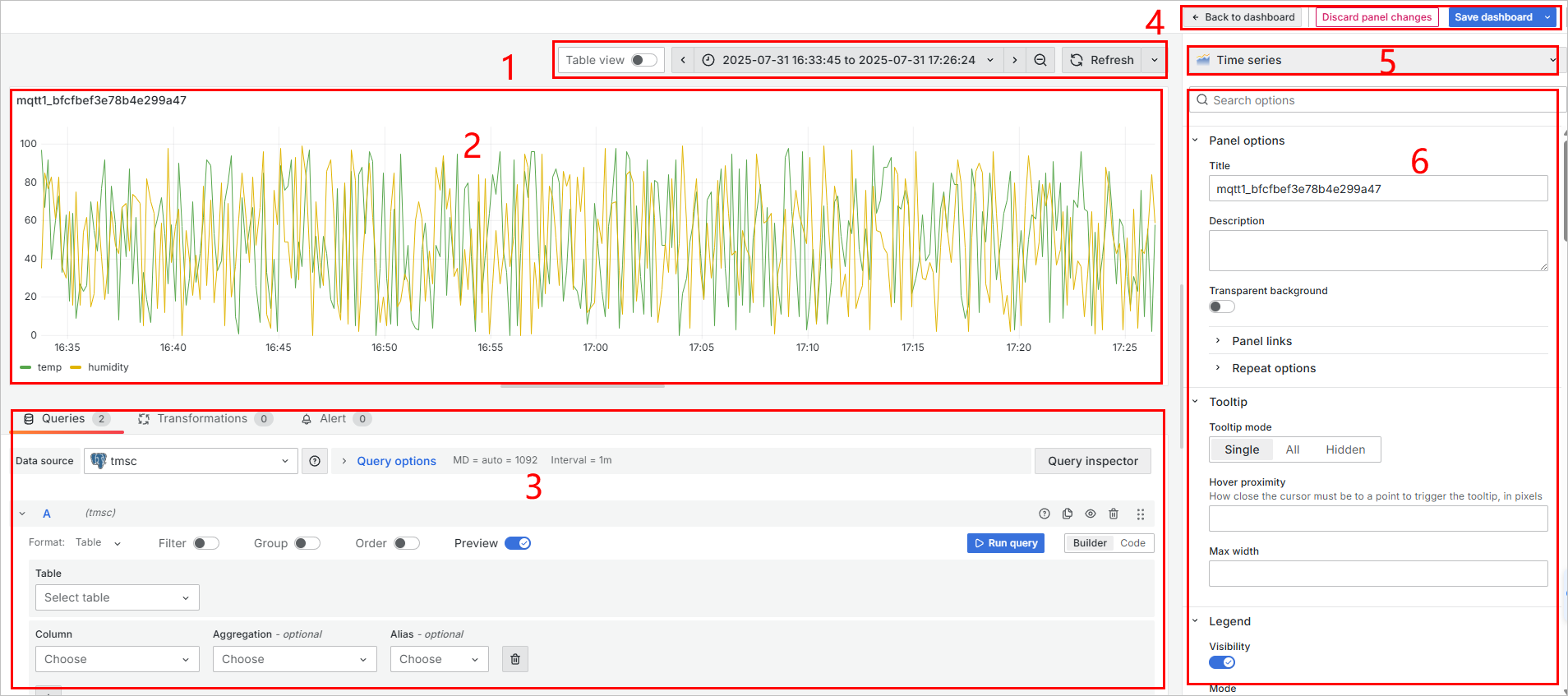| 4 | General Operations | Go back to dashboard list/discard the changes on the current panel/save the dashboard. |