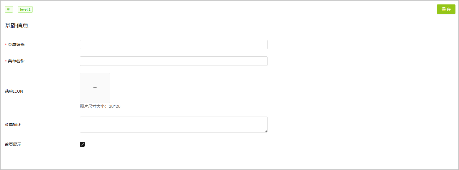 首页展示是否在首页展示该菜单。