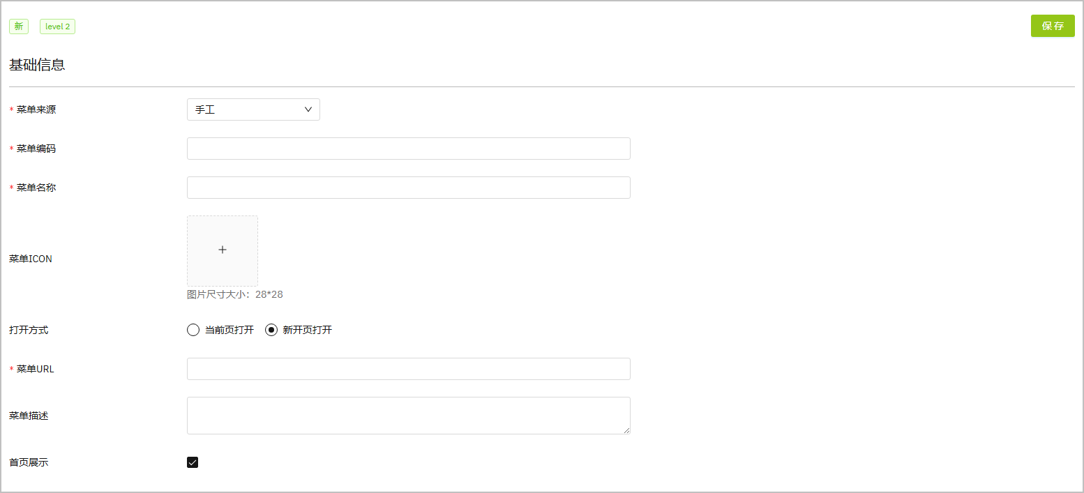 2. 输入菜单信息后,单击 保存