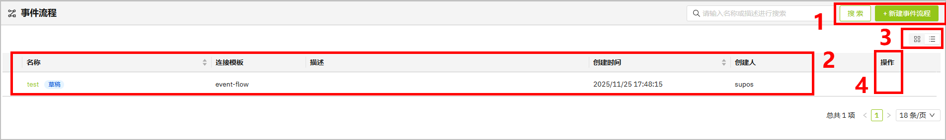 操作指南配置事件流程本页总览如何配置事件流程 登录Tier0,然后选择 数据管理 > 事件流程。 序号项目说明1搜索搜索现有数据流。新建事件流程添加一条新的数据流。2流列表显示数据流信息,单击流名称可开始编辑数据流。3显示方式切换数据流的卡片式/列表式显示。4流操作对数据流进行复制/编辑/删除操作。 单击 新建事件流程,输入名称后单击 保存。 单击刚创建的数据流,构建数据流以分析数据。